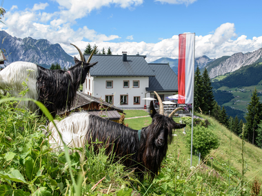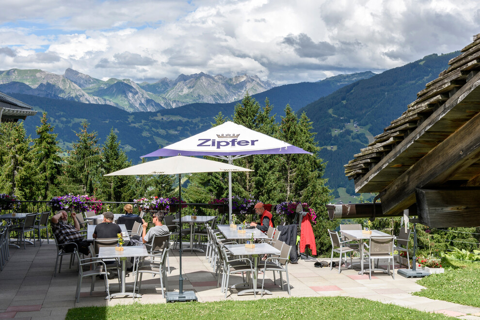 Hier oben erwarten Euch Idylle, geselliges Beisammensein und eine Aussicht in die wunderschöne Berglandschaft des Montafons.