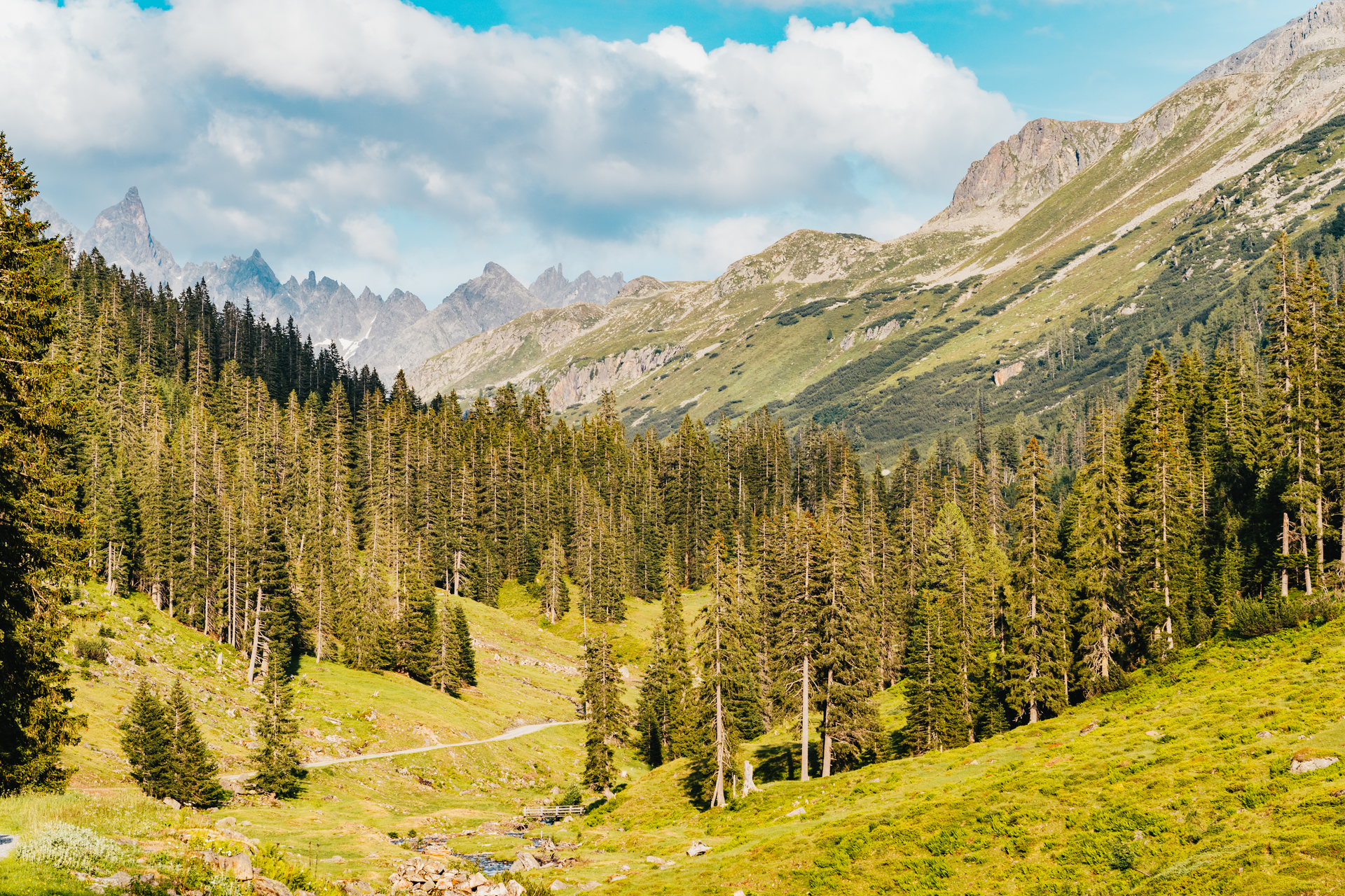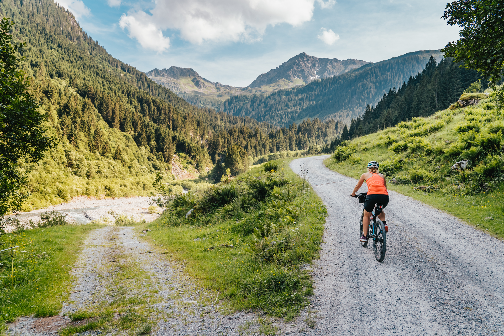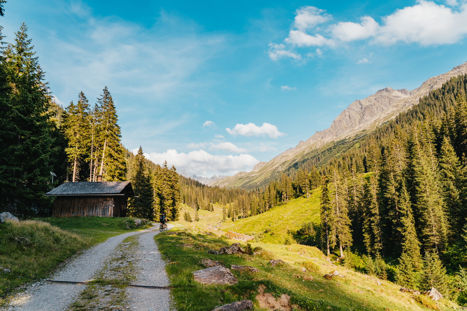 Von Schruns fährst Du auf der Hauptstraße bis ins Silbertal. Am Ende der Ortschaft (beim Felsaparkplatz) bleibst Du links vom Wildbach und fährst auf dem Güterweg bis zur Almhütte Fellimännle (auf halber Strecke überquerst Du den Wildbach).