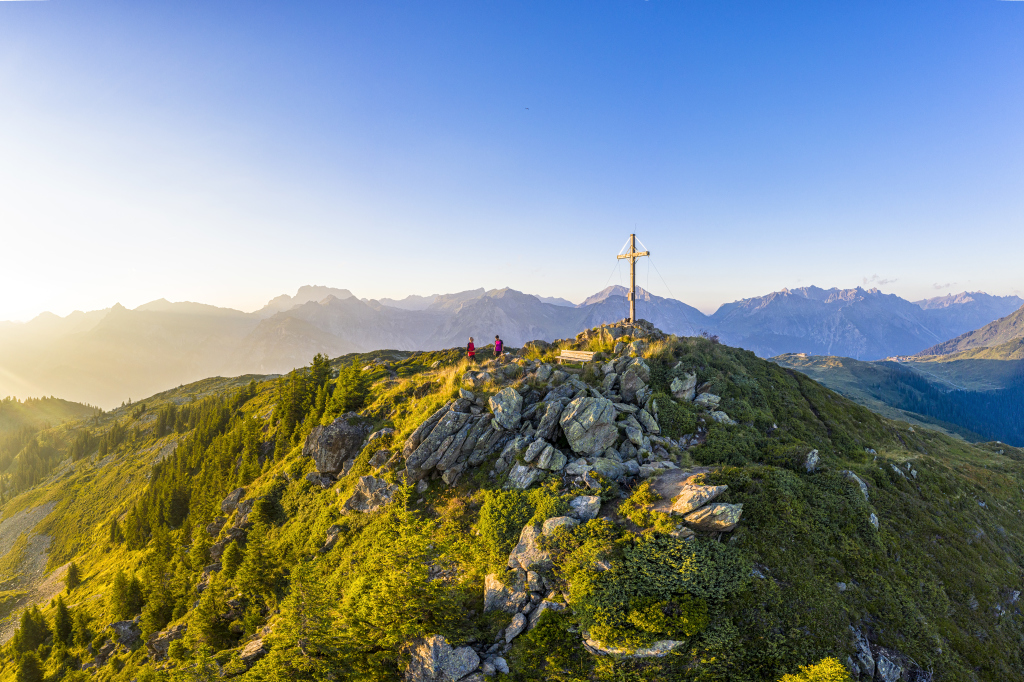 Hier lässt Du das E-Mountainbike stehen und gehst zu Fuß weiter. Du folgst der Wanderwegbeschilderung auf den Muttjöchle-Gipfel, welcher Du nach ca. 1 Stunde erreichst.