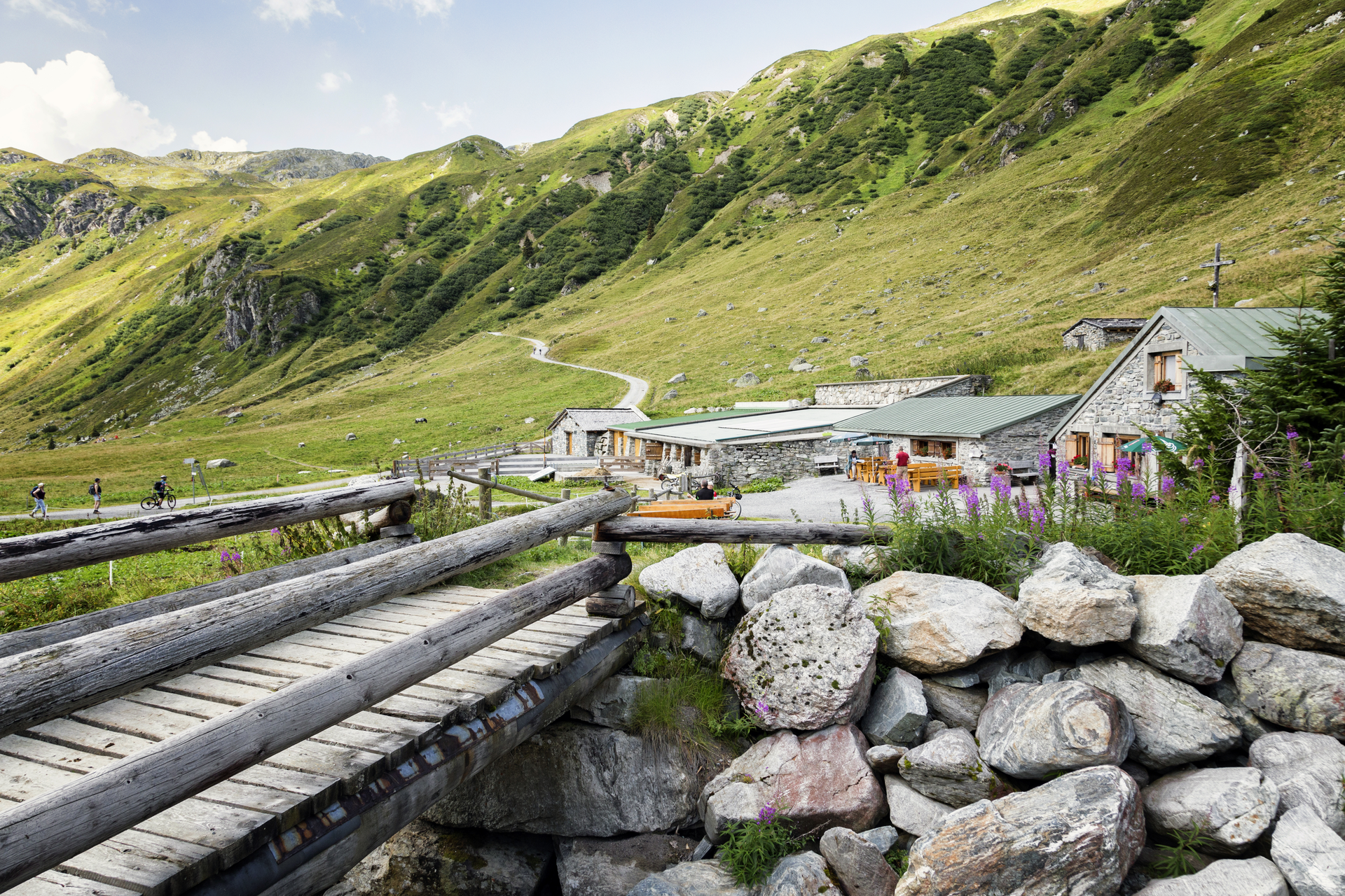 Von der Neuen Heilbronner Hütte führt der Weg auf einem Güterweg zur Verbella Alpe und weiter zum Kopssee. Hier beginnt der sehr schöne, im Jahr 2013 revitalisierte Vallülaweg. Der etwas anspruchsvolle Anstieg führt zuerst zum sehr idylisch gelegenen Vallülasee und weiter, dem Wegweiser Bielerhöhe folgende, zum oberen Bergsee. Zwischen der Vallüla und der kleinen Vallüla führt der Weg um große Felsbrocken hoch zum Joch. Vom Wegweiser am Joch erreicht man die Bielerhöhe in ca. 1,5 Stunden. Vom Silvrettassee-Bielerhöhe sind es noch ca. 2 Stunden auf dem "Sommerweg" bis zur Wiesbadener Hütte. Trittsicherheit am Vallülaweg erforderlich!