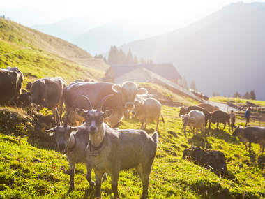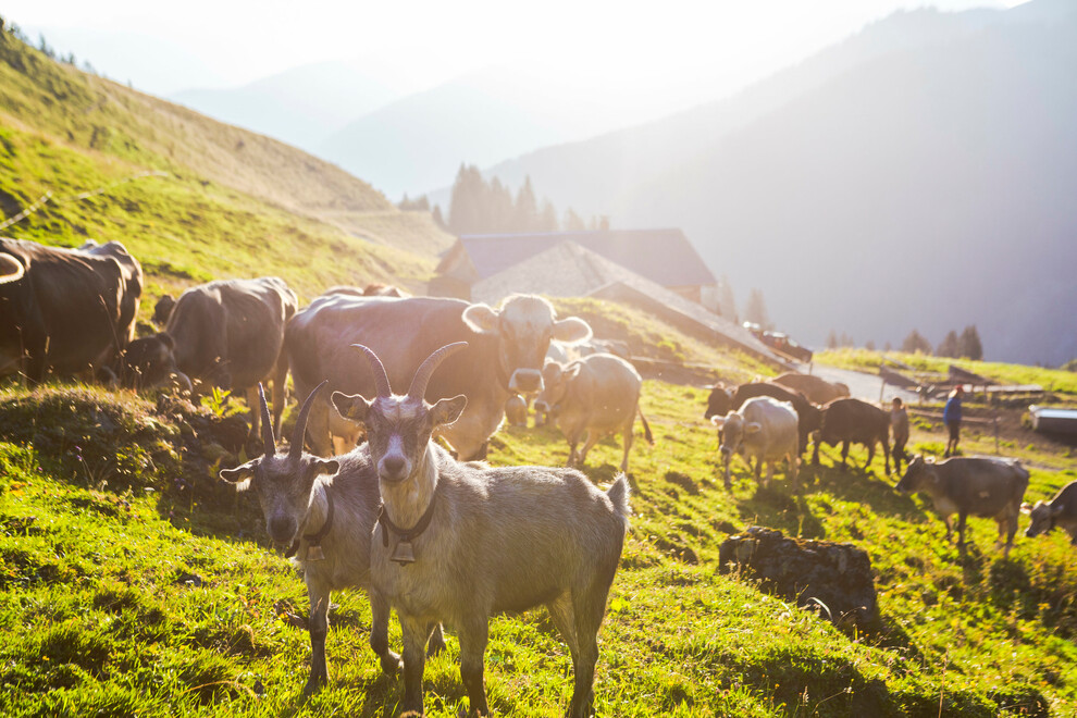 • Auf der Alpe gibt es Milchkühe, Rinder, Kälber, Alpschweine & Pferde.