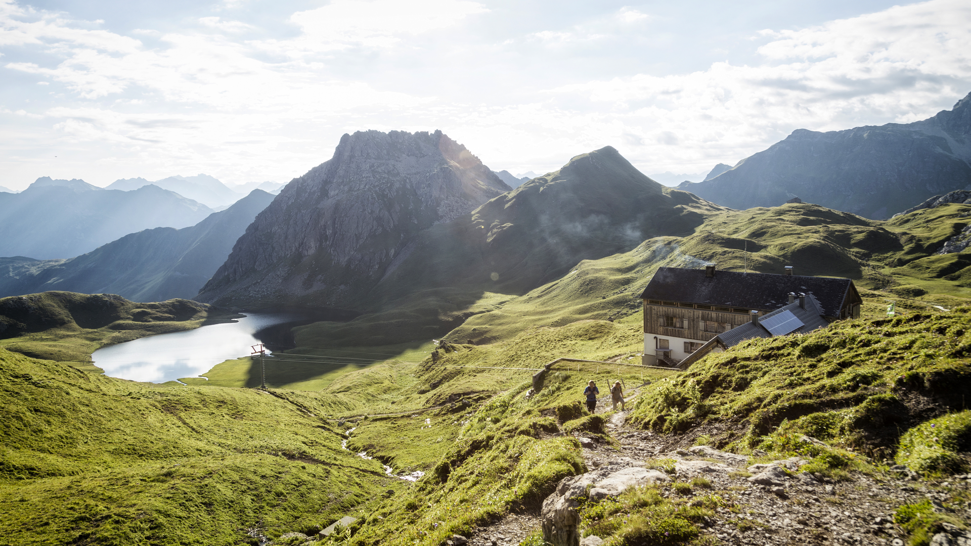 Unter den vielen Wandermöglichkeiten wählst Du als Abstiegsroute den Seeweg und das Herrawegli ins ursprüngliche Gampadelstal. Dafür gehst Du auf dem Anstiegsweg ca. 10 min. zurück, danach wendest Du Dich nach rechts und wanderst auf dem Walseralp-Seeweg zum Tilisunasee hinunter. Ein kleines Wegstück dürfen wir den plätschernden Abfluss des Tilisunasees begleiten. Dann verläuft der Abstieg weiter links steil und steinig hinuter zur Walseralpe. Dabei rückt der felsige Aufbau der Tschaggunser Mittagspitze immer mehr ins Blickfeld. Das anschließende schmale Herrawegli ist weniger steinig und führt hinuter zu den Gampadelsalpen. Bei der ersten Hütte geht es nach links zum Fahrtsträsschen und auf diesem bergab. Du folgest dem gut markierten Wegen des Ziegerberges zurück nach Tschagguns.