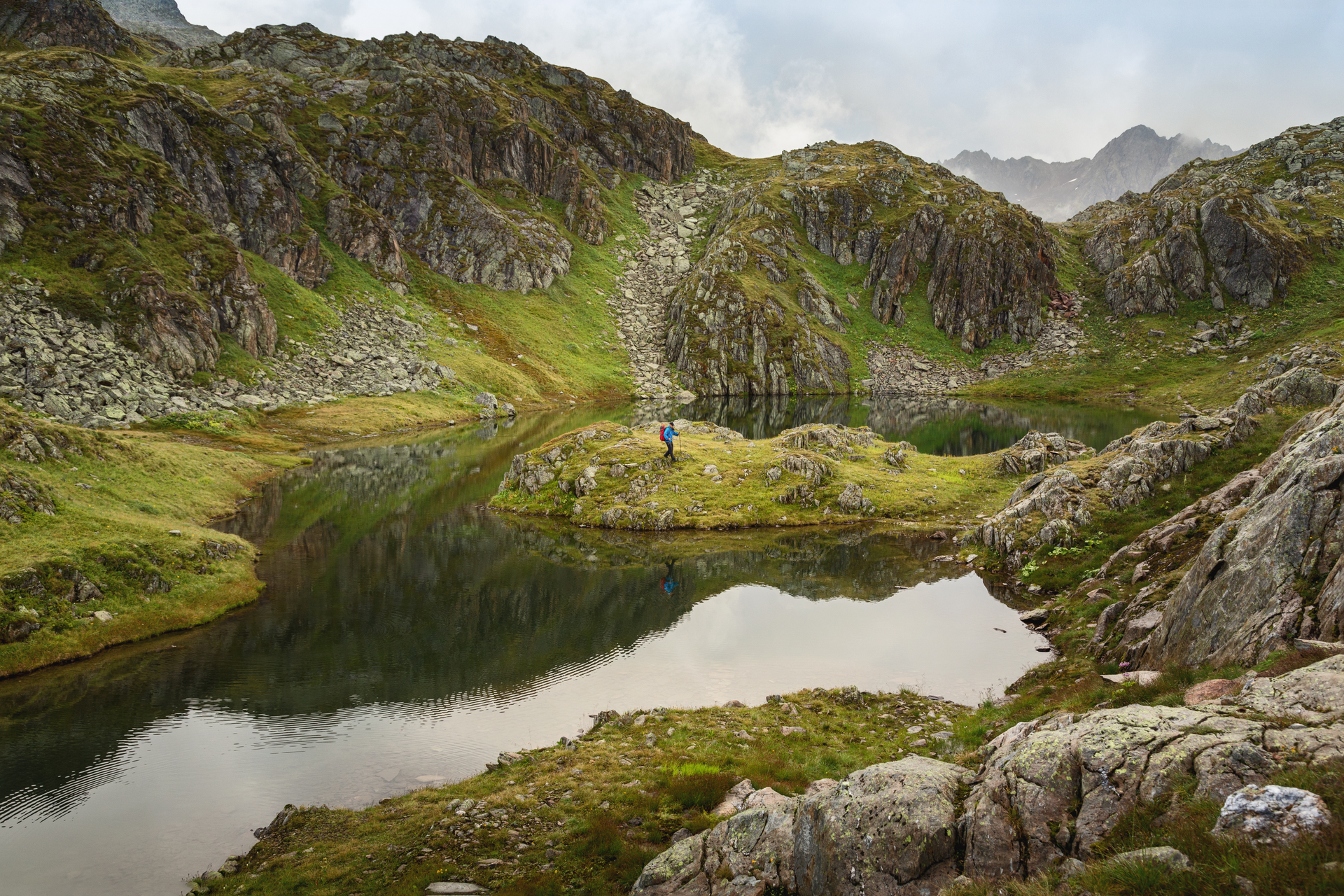 From the Wormser Hut, the path leads up to Kreuzjoch and then down to Furkla (Grasjoch). Afterwards, there is a slight ascent to Wormser Törl and onwards to Roßbergjoch. Over further ups and downs, the path runs below the Valschavieler Maderer through the breathtaking highlands of this valley. For the last section, we recommend the path via the Gaschurner Winterjöchle with the beautiful Kessisee and Valschavielsee. The route over the Valschavieljöchle would be somewhat shorter, but not as beautiful.